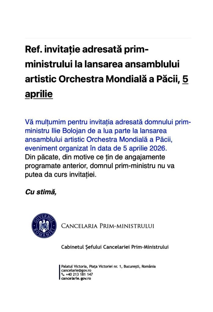 Cu toate că România se învecinează cu un conflict activ și suferă din punct de vedere economic din cauza situației geopolitice actuale, Guvernul României refuză participarea la eveniment. Într-o postare pe Facebook, Nicolae Voiculeț a publicat refuzul oficial al cancelariei premierului Ilie Bolojan la invitația de a participa la concert.